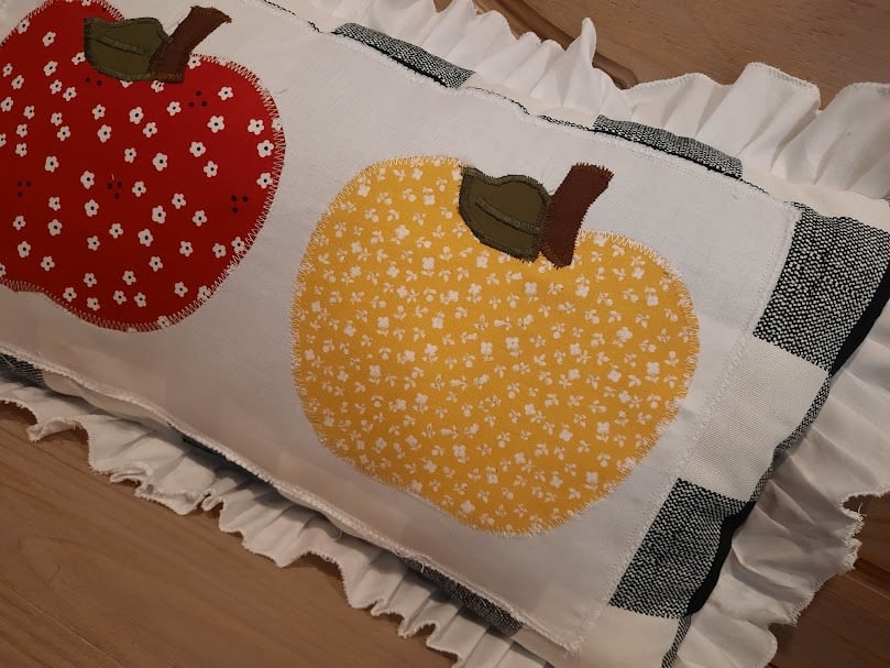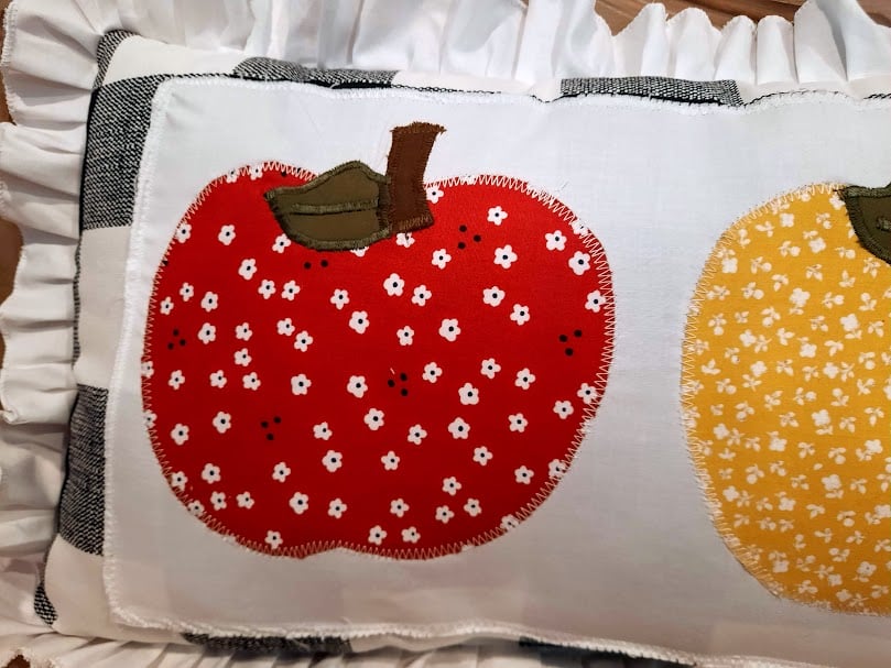 Colorful Applique Apples 2/Buffalo Check/white ruffle